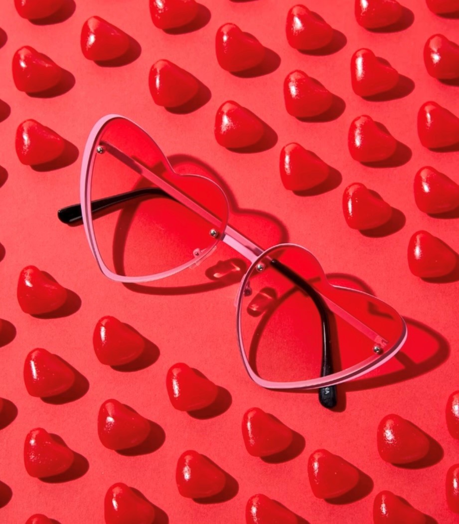 For when you want to look like the   emoji, or just want to see life in a different light, shop these ruby-licious heart glasses. They're super cute and fashionable. They'll have you seeing love all around.